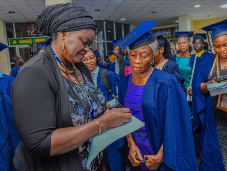 Mrs. Kate Bosede Akomolafe, 69, captured attention at the University of Ibadan’s Distance Learning Centre (DLC) matriculation ceremony on Friday as she took the oath of admission alongside more than 5,000 new students for the 2024/2025 academic session.