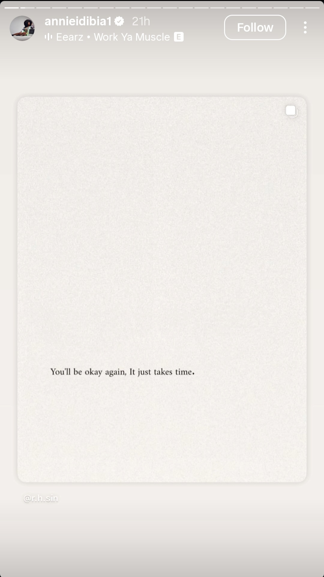 Annie Idibia has sparked speculation on social media after sharing a series of cryptic posts amid the ongoing public drama between her ex-husband, 2Face Idibia, and his wife, Natasha Osawaru.