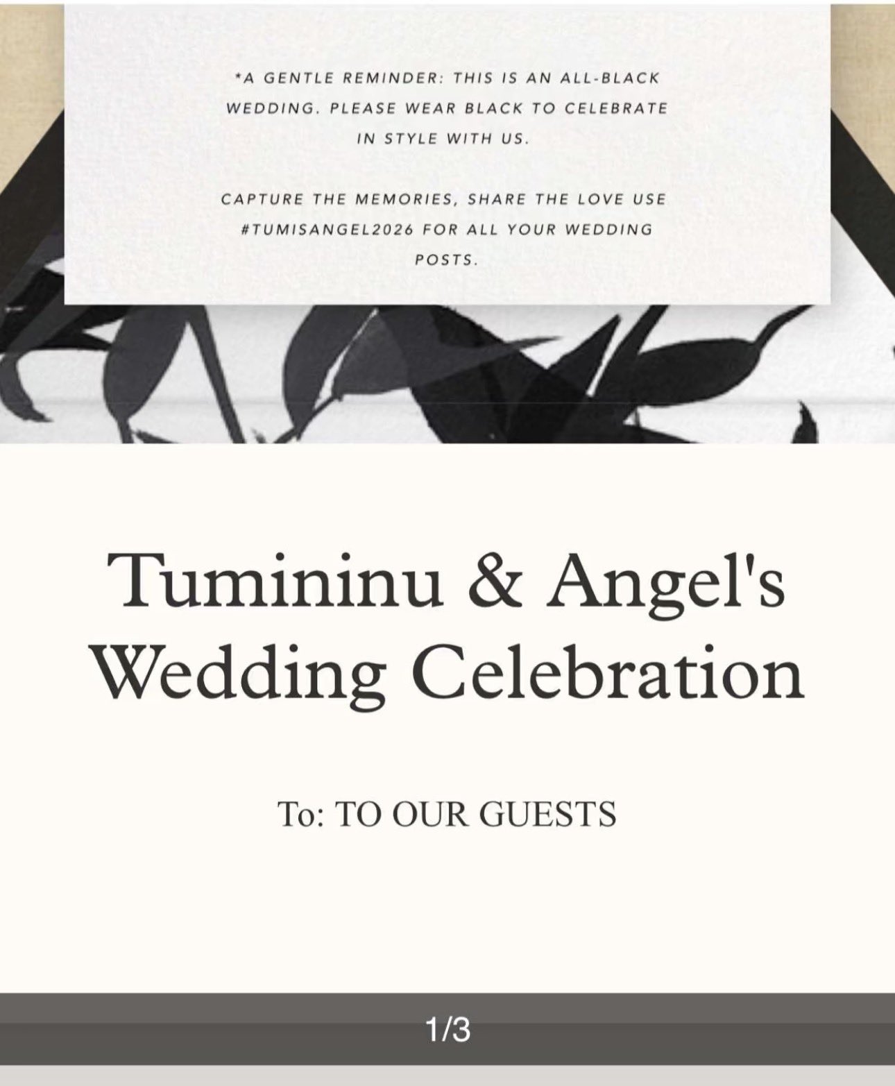 She later shared a post featuring their wedding invitation card, which included the hashtag #Tunmisangel2026 and asked guests to dress in black for the celebration.
