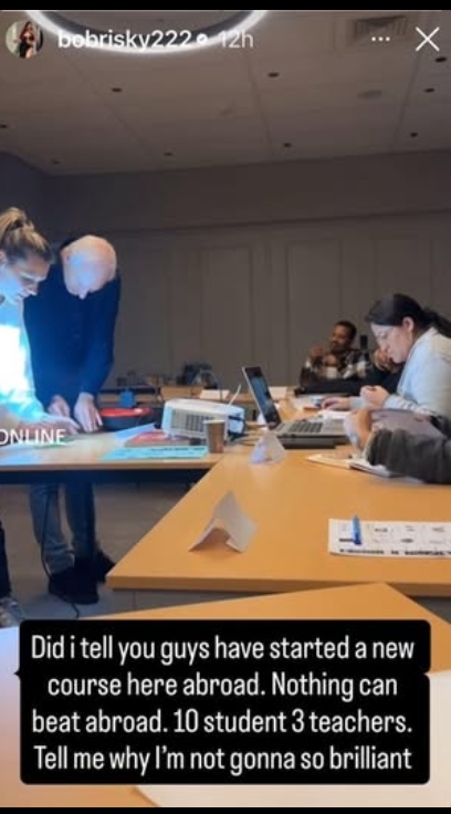 In a post, she wrote: “Did I tell you guys I’ve started a new course abroad? Nothing can beat studying overseas. With just 10 students and 3 teachers, tell me why I’m not going to be so brilliant.”