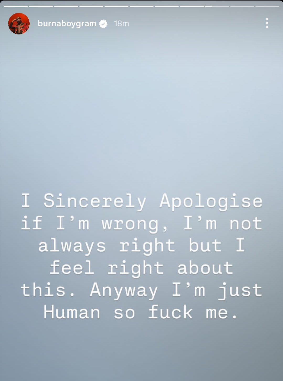 Burna Boy Apologizes on Instagram While Defending Himself After Livestream Controversy