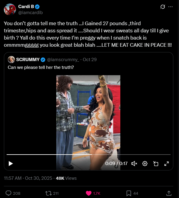 Cardi’s reply not only shut down body shamers but also highlighted a broader message — that women deserve to enjoy their pregnancies without constant scrutiny or judgment.