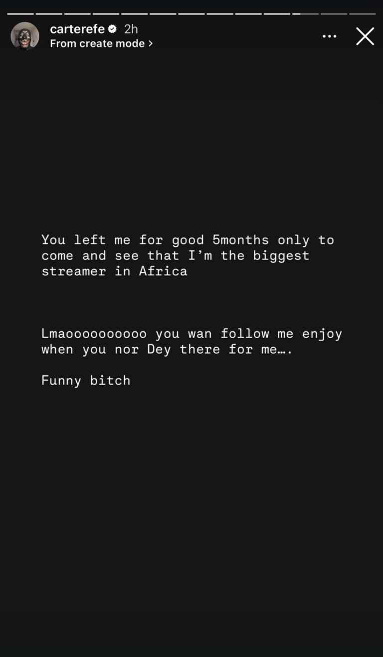 In a series of emotional posts on X, Carter Efe explained that the breakup marked a turning point in his life, insisting that his growth and renewed focus came after walking away from the relationship.
