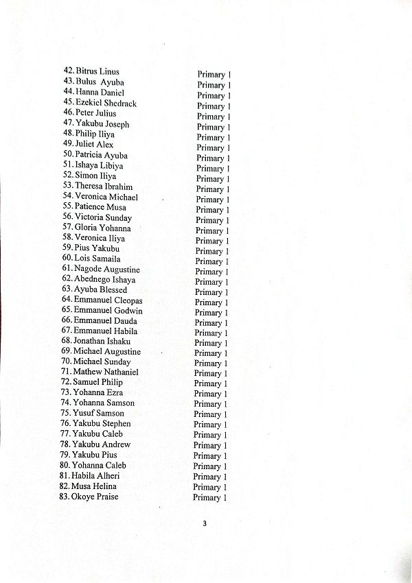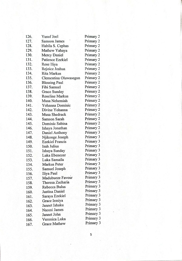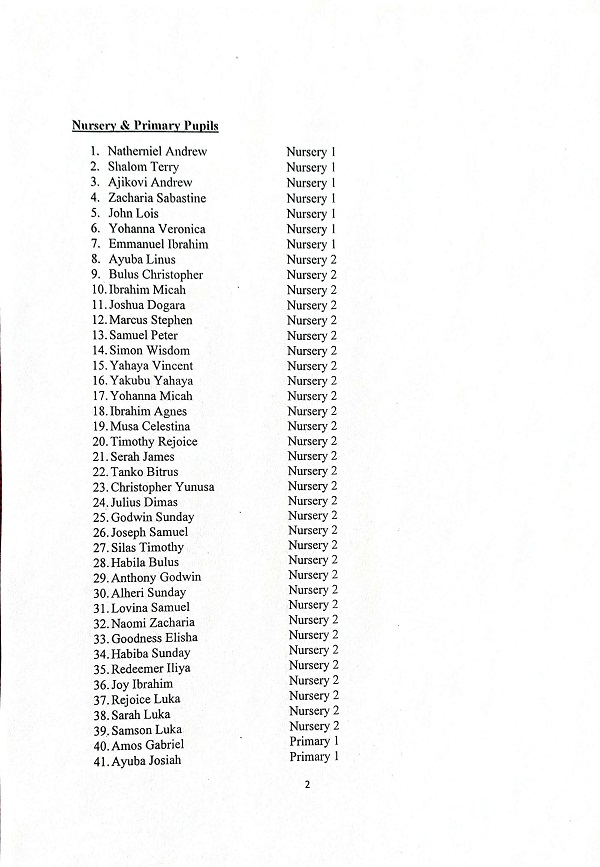 The Catholic Diocese of Kontagora in Niger State has released the names of 265 students and teachers still in captivity following an attack on St. Mary’s School, Papiri.