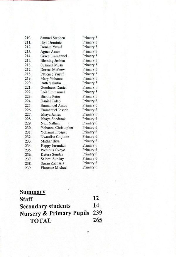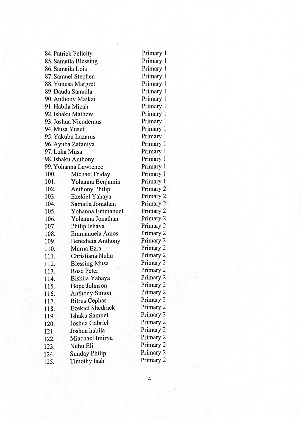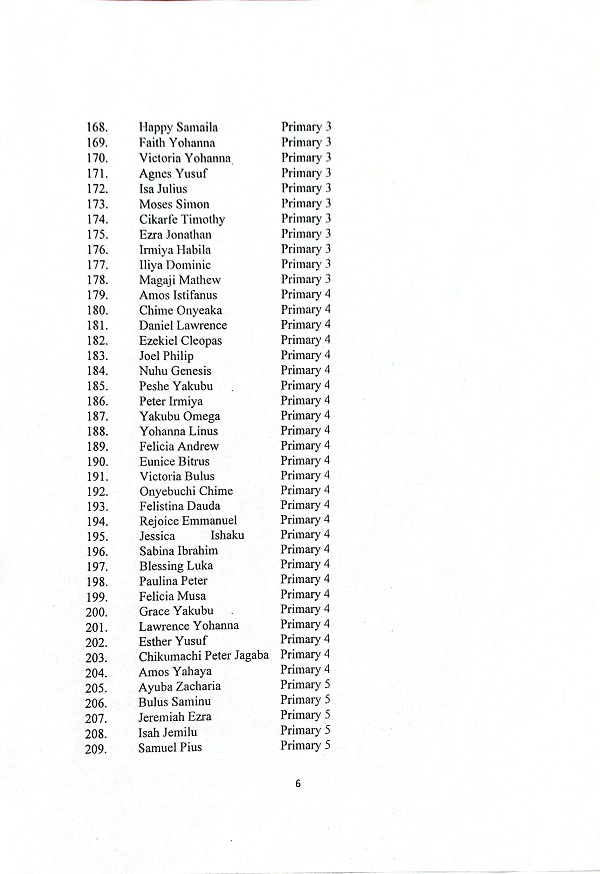 Catholic Releases Names of 265 St. Mary’s School Students and Teachers Still in Captivity