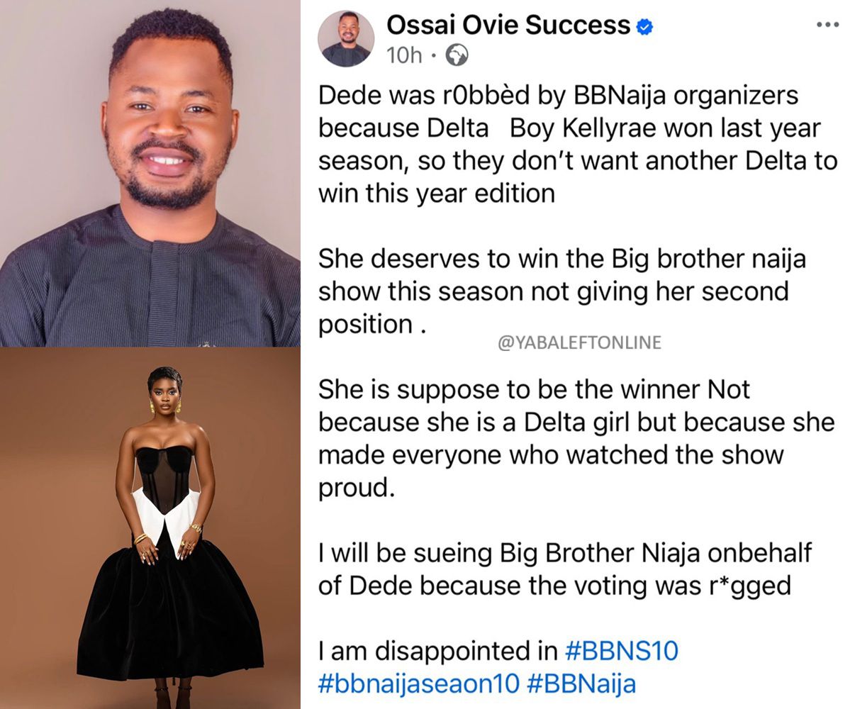 Delta State Government’s Senior Special Assistant on Media, Ossai Ovie Success, has accused the organisers of Big Brother Naija Season 10 of manipulating the results to stop Dede from winning the show.