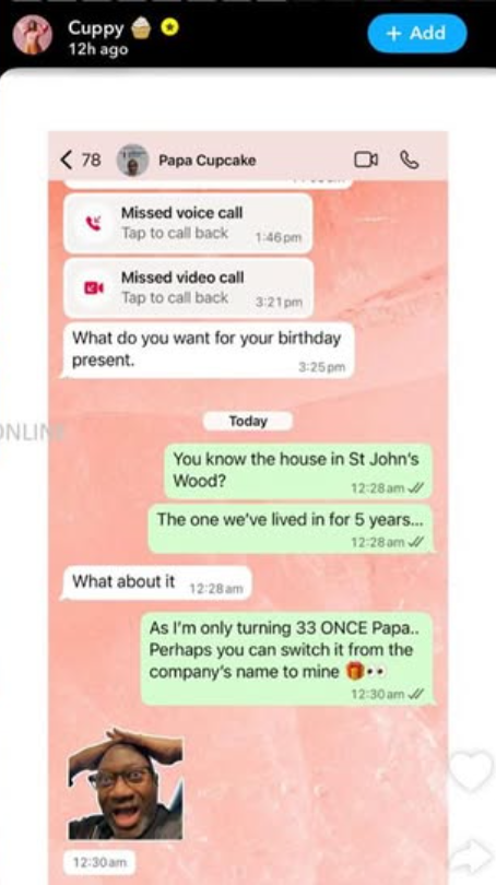 The exchange reportedly began when Otedola asked his daughter what she wanted for her birthday. Cuppy replied, “You know the house in St John’s Wood? The one we’ve lived in for 5 years… As I’m only turning 33 ONCE, Papa… perhaps you can switch it from the company’s name to mine.”