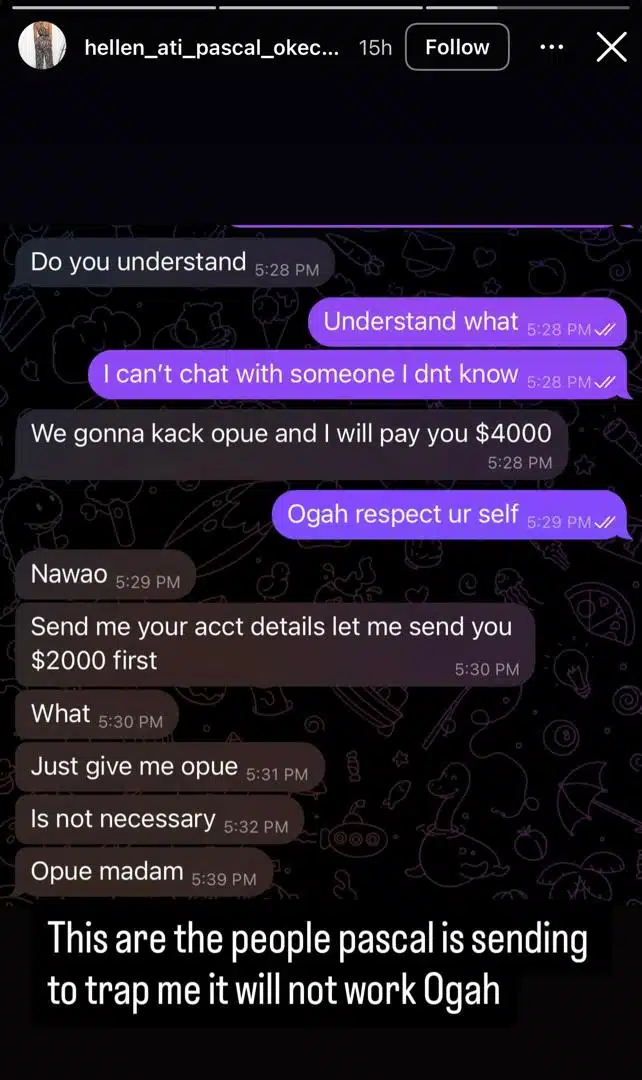 In a series of posts, Hellen claimed Cubana sent men to threaten her and pressure her into withdrawing her paternity claims. She also shared screenshots of messages, which she said were proof of his manipulation.