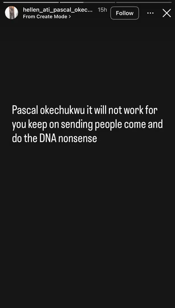 Addressing him directly, she wrote: “Pascal Okechukwu, it won’t work for you. Stop sending people to do DNA nonsense.”