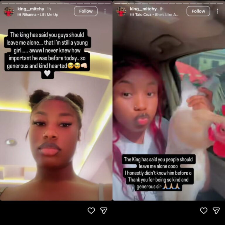 Posting on her Instagram story, she disclosed that the traditional ruler had contacted her and urged critics to back off. Mitchy expressed appreciation for his support, admitting she had not previously realized how influential he is.