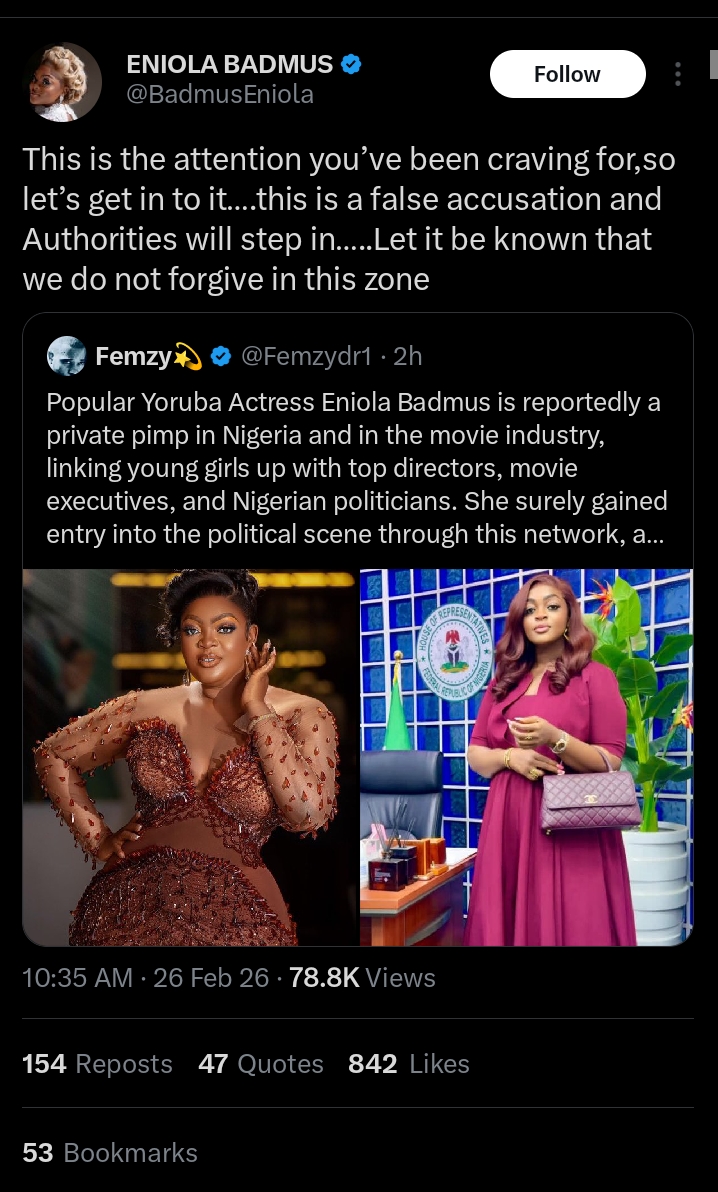 Addressing the allegation, Badmus wrote: “This is the attention you’ve been craving for, so let’s get into it…. This is a false accusation and authorities will step in….. Let it be known that we do not forgive in this zone.” Her statement emphasized that the claims are baseless and warned of legal action against those spreading them.