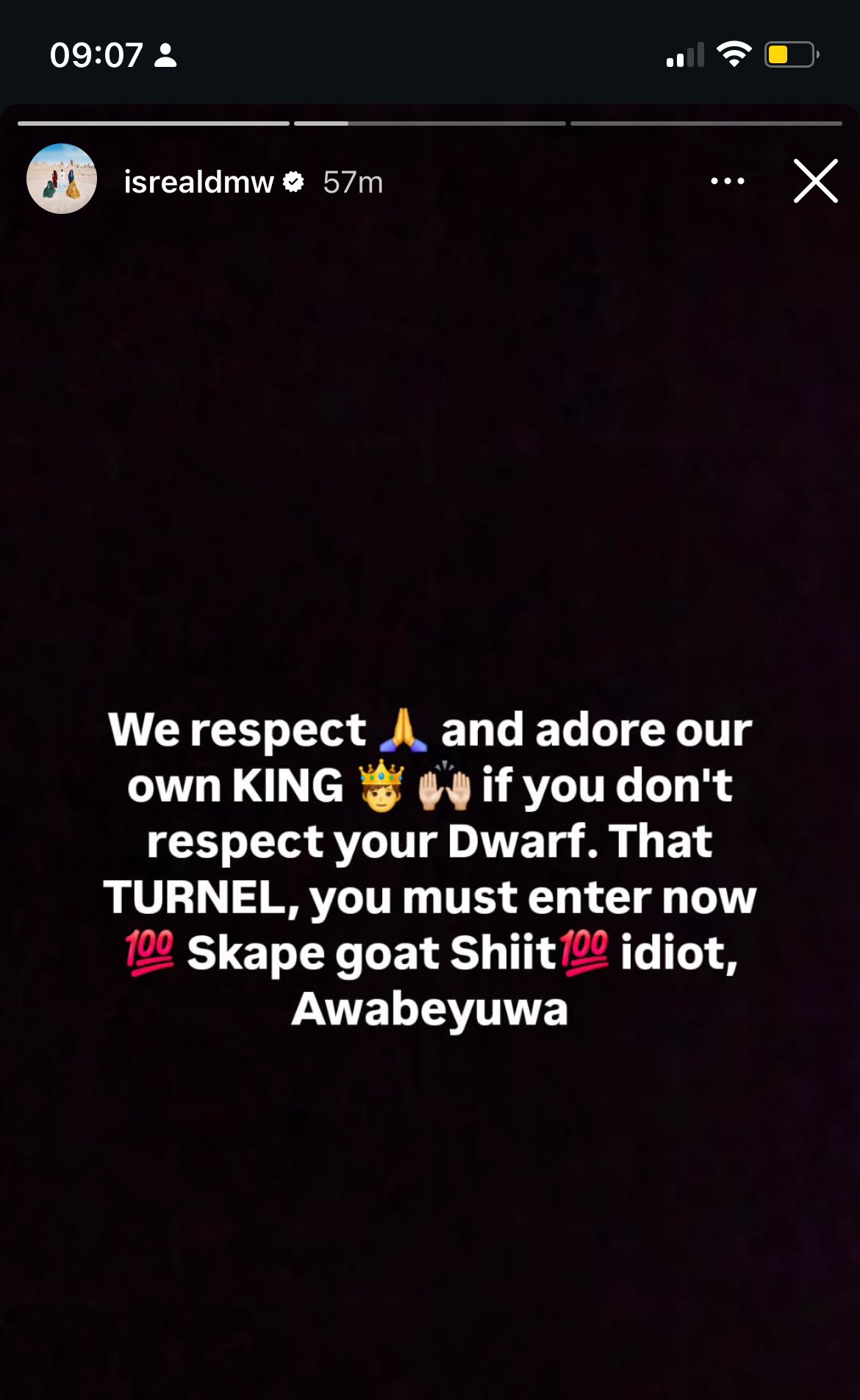 The feud escalated with insults and jabs. Isreal reportedly called DJ Tunez an “illegitimate child” and nicknamed him “DJ Tunnel,” while urging him to “respect his own king.” DJ Tunez struck back by sharing a clip of a controversial moment where Davido slapped Isreal, seemingly mocking him.