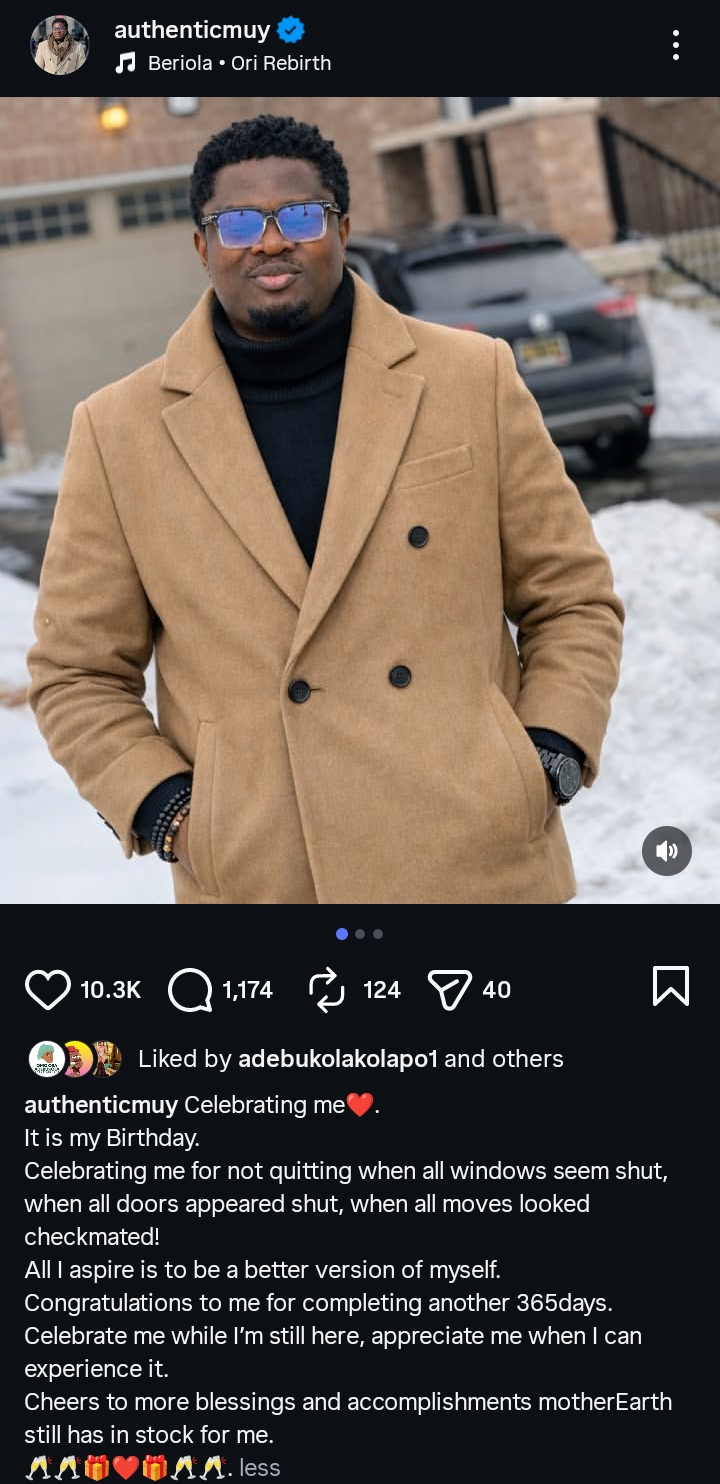 Popular Nollywood actor and producer Muyiwa Ademola is celebrating his birthday today, taking time to appreciate himself and the journey that has shaped him.
