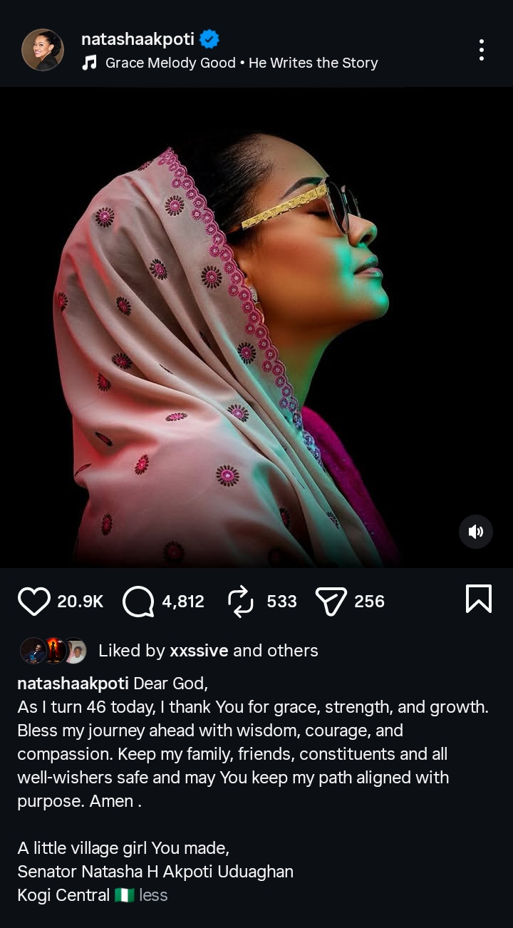 Kogi Central Senator, Natasha Akpoti-Uduaghan, marked her 46th birthday by reflecting on her journey and expressing gratitude for the blessings she believes have shaped her life.