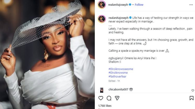 Nollywood actress and entrepreneur Anita Joseph has officially confirmed the end of her marriage, putting months of speculation to rest.