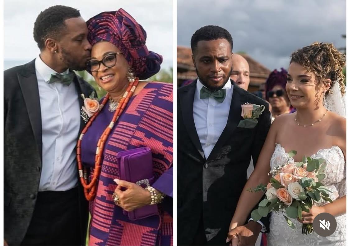 Veteran Nollywood actress, Bukky Wright, has celebrated her son, Eniola, as he tied the knot with his international partner.