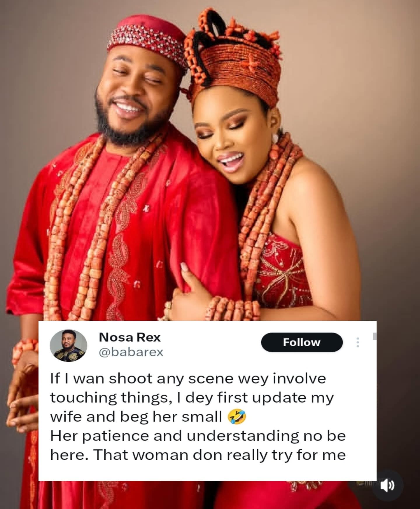 Actor Nosa Rex has drawn attention on social media after revealing that he does not film romantic or intimate scenes without first speaking to his wife.