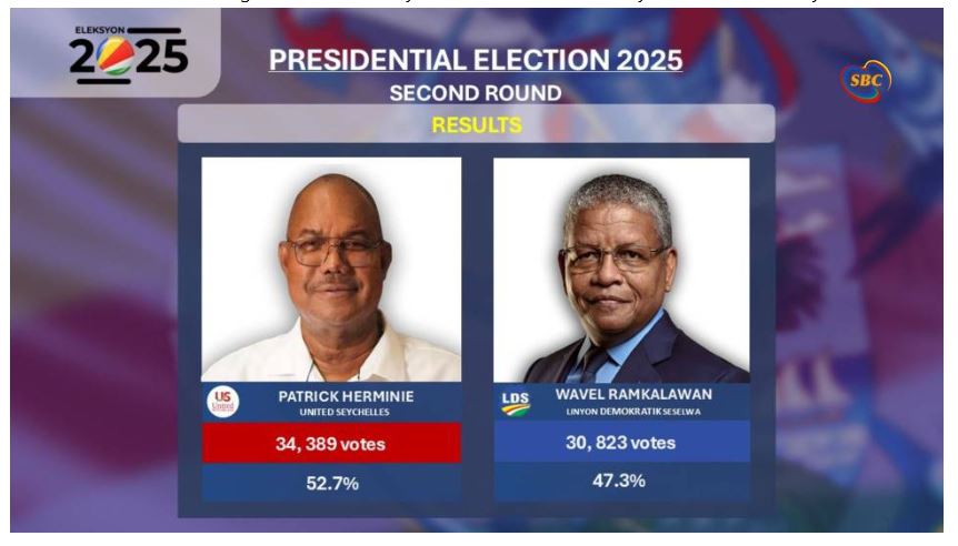 Opposition leader Patrick Herminie has emerged victorious in the Seychelles presidential run-off election, securing 52.7% of the vote against incumbent Wavel Ramkalawan, who garnered 47.3%, according to the country’s electoral commission.