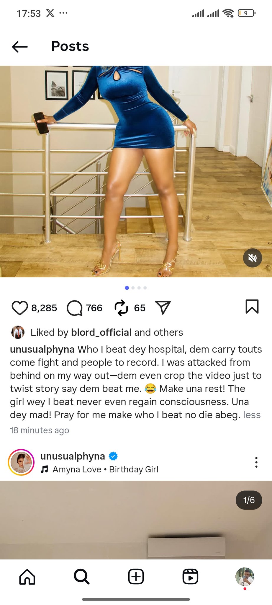 Sharing photos of herself in a blue dress, Phyna claimed that she was attacked from behind while leaving the hotel and accused people of editing the video to misrepresent the incident. She also revealed that the girl she allegedly fought has not yet regained consciousness.