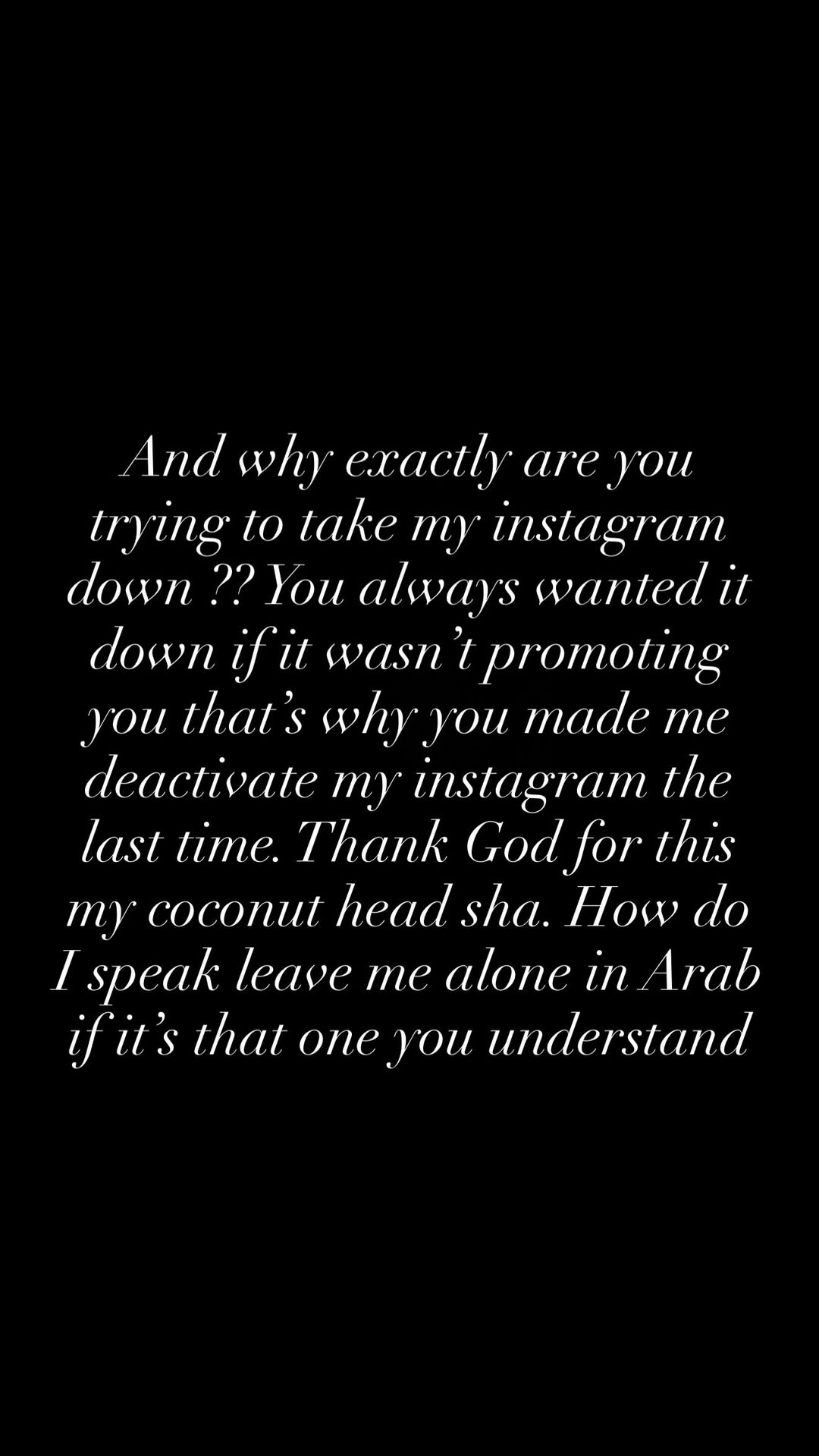 She wrote: “Guy’s this man is choking me and it’s driving me crazy! Y’all don’t know half bit. I just want to be free! My life feels spherical just turning in same place.”