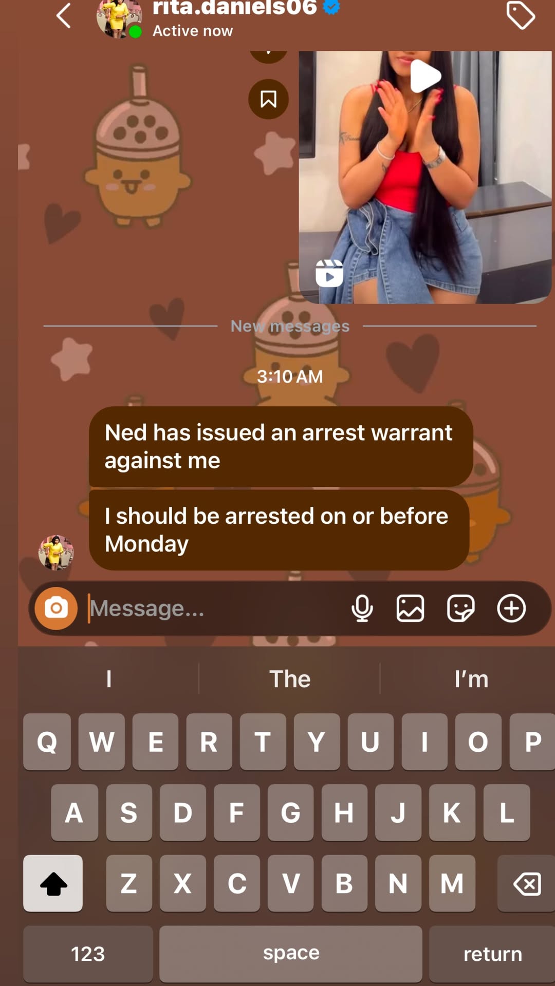“Ned has issued an arrest warrant against me. I should be arrested on or before Monday.”