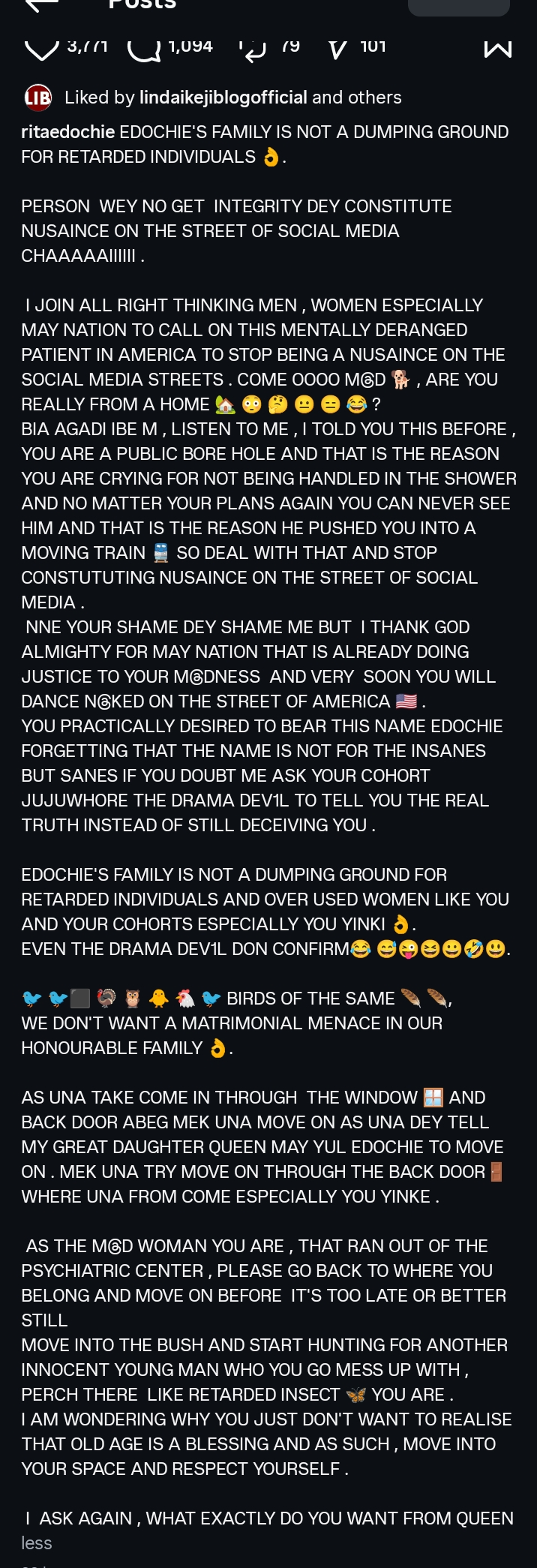 The feud stems from Yinka’s past relationship with Linc Edochie, which ended bitterly, after which she has repeatedly targeted members of the Edochie family online. Rita has remained vocal in defending her family, especially in support of May Edochie following Yul Edochie’s second marriage.