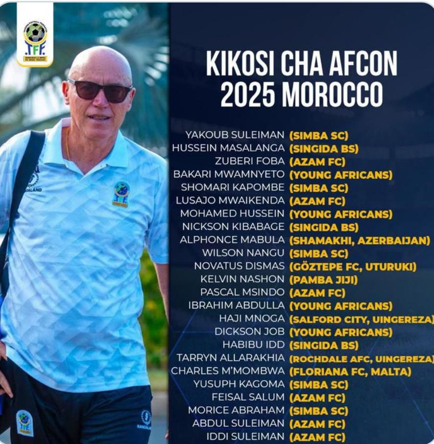 Taifa Stars of Tanzania Head coach, Miguel Gamondi has named his squad for the 2025 Africa Cup of Nations.