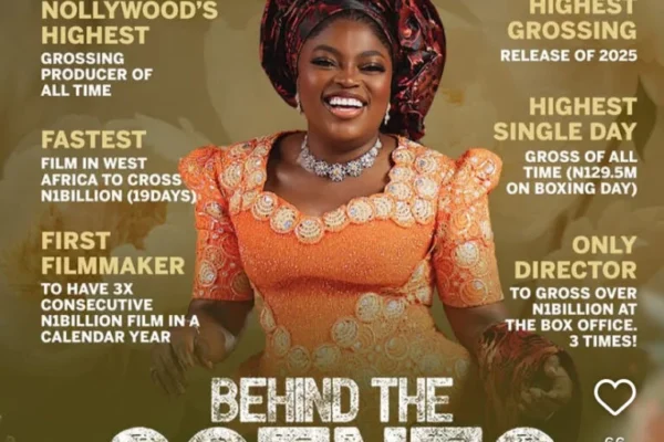 Funke Akindele has set a new benchmark in Nollywood with her latest film, Behind The Scenes, which has now grossed over ₦1 billion at the box office, totaling ₦1,109,463,846. The film’s performance marks it as one of the highest-earning movies in Nigerian cinema history. FilmOne Entertainment, the movie’s distributor, announced the milestone on X, calling it “historic and unprecedented” for the West African film industry. According to the company, Behind The Scenes is the fastest film in West Africa to surpass ₦1 billion and also achieved the highest single-day gross on Boxing Day, earning ₦129.5 million. The distributor also revealed that the film has become the highest-grossing theatrical release of 2025 so far and continues to draw strong audiences weeks after its debut. Funke Akindele’s record-breaking achievement was highlighted, noting that she is now the only director to have three films cross ₦1 billion and the first filmmaker in Nollywood to deliver three consecutive ₦1B+ movies in a single year. Behind The Scenes had previously earned ₦512 million within 12 days of release, making it the top-grossing Nollywood film of 2025 at that point. The film held advanced screenings on December 10 and 11 before officially opening nationwide on December 12, quickly surpassing ₦200 million in its opening weekend. The movie explores the theme of black tax, focusing on the financial and social pressures faced by individuals supporting extended families—a topic that has struck a chord with audiences. The film stars Scarlet Gomez in the lead role, supported by an ensemble cast including Funke Akindele, Iyabo Ojo, Destiny Etiko, Tobi Bakre, Uche Montana, Uzor Arukwe, Ini Dima-Okojie, Adebowale ‘Mr Macaroni’, Ibrahim Chatta, Kamo State, and reality stars Handi and Wanni Danbaki.