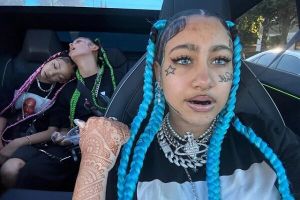 North West, the 12-year-old daughter of Kim Kardashian and Kanye West, surprised fans with an edgy makeover on TikTok, showing off a faux septum piercing, temporary tattoos, and bold accessories. In the photos and clips shared on her joint TikTok account with her mother, North wore her dark hair in four long braids streaked with blue highlights. She added playful face tattoos — including a star beneath one eye and her name written in cursive on her cheek — while also sporting bright blue contact lenses, dramatic lashes, a black grill, and the fake nose ring. Her outfit matched the bold vibe: an oversized black T-shirt paired with layers of silver chains, pearls, and cross pendants. She completed the look with a henna-style hand tattoo and pink glittery jewelry. North posed alongside two friends dressed in similar coordinated outfits, captioning her post with heart emojis and the hashtag “#northforever.” In a follow-up clip, she made it clear that her dramatic look was just for fun, writing, “Fake piercings and fake tatts 4 life.” The post quickly went viral, sparking mixed reactions online. While some social media users were taken aback by the mature styling — with one asking, “She’s TWELVE??” — others defended the young star, pointing out that it was harmless fun. “It’s not that deep — everything’s fake,” one person wrote, while another added, “Most of us played with fake tattoos at that age too.”