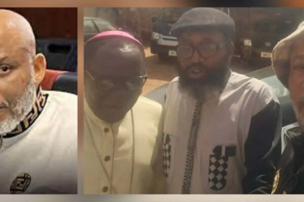 The Catholic Bishop of Sokoto, Most Rev. Matthew Hassan Kukah, has paid a visit to Nnamdi Kanu, leader of the Indigenous People of Biafra (IPOB), at the Sokoto Correctional Centre. Former African Action Congress (AAC) presidential candidate Omoyele Sowore commended the visit, describing it as a strong show of support. “Thank you so much, Bishop Matthew Hassan Kukah, for taking the time to visit Mazi Nnamdi Kanu today. Your visitation represents the solidarity of Sokoto Diocese with #MNK during this challenging time,” Sowore said. Kanu was convicted on terrorism charges by the Federal High Court in Abuja on November 20, 2025, and sentenced to life imprisonment. He was transferred to the Sokoto Correctional Centre the following day, following a court order that barred him from being held at Kuje Prison. The conviction followed prosecution on seven terrorism-related counts, including incitement and unlawful broadcasts. Justice James Omotosho found Kanu guilty on all counts and sentenced him to life imprisonment. Since his transfer, Kanu’s legal team has filed motions requesting his return to Abuja to facilitate his appeal. They argue that the distance makes it difficult to access court records, prepare his defense, and meet with lawyers. His team also contends that Nigeria lacked jurisdiction over broadcasts made in the UK, describing the trial as rushed and flawed. The court had ruled that Kanu could be detained in any correctional facility except Kuje Prison. Notable figures, including Abia State Governor Dr. Alex Otti and Sokoto State Governor Ahmad Aliyu, visited Kanu at the custodial centre in late November.