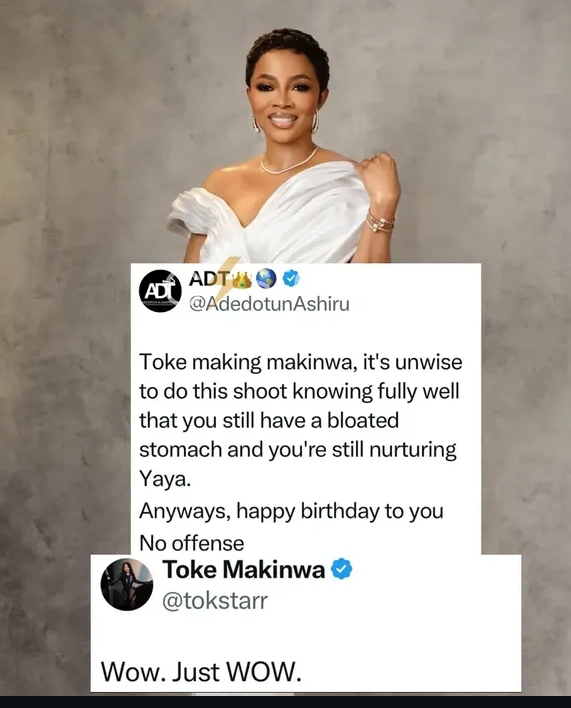 Nigerian media personality Toke Makinwa has reacted to a troll who made an unkind comment about her post-partum body.