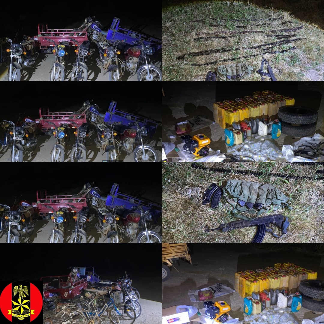 In a separate operation, troops deployed at Mangada intercepted 29 suspected terrorist logistics suppliers heading to Chilaria. Recovered from them were two pickup vans, a tricycle loaded with 1,000 litres of petrol, four gallons of engine oil, two gun truck tyres, a large cache of medical supplies, and significant quantities of foodstuffs and provisions.